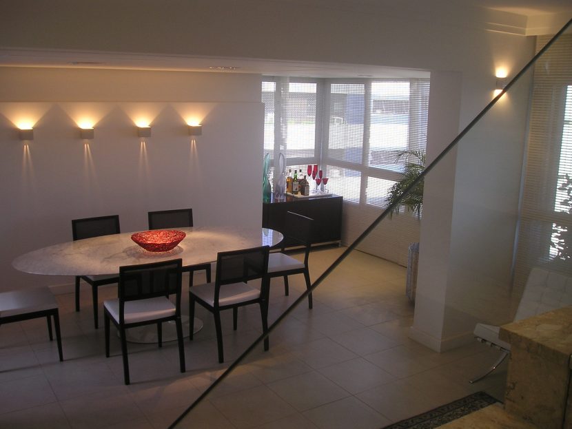 Nessa cobertura no Itaigara, optei por retirar o antigo guarda corpo de alvenaria. Preservei o bege bahia existente, usei o vidro laminado puro e fiz a complementação na parte externa com o mesmo bege bahia. Contemporâneo, limpo e sem gastar muito.